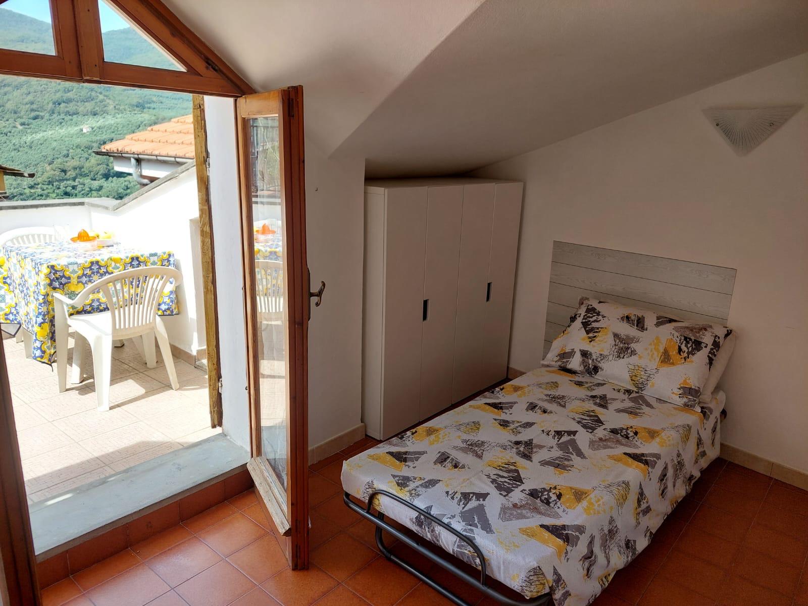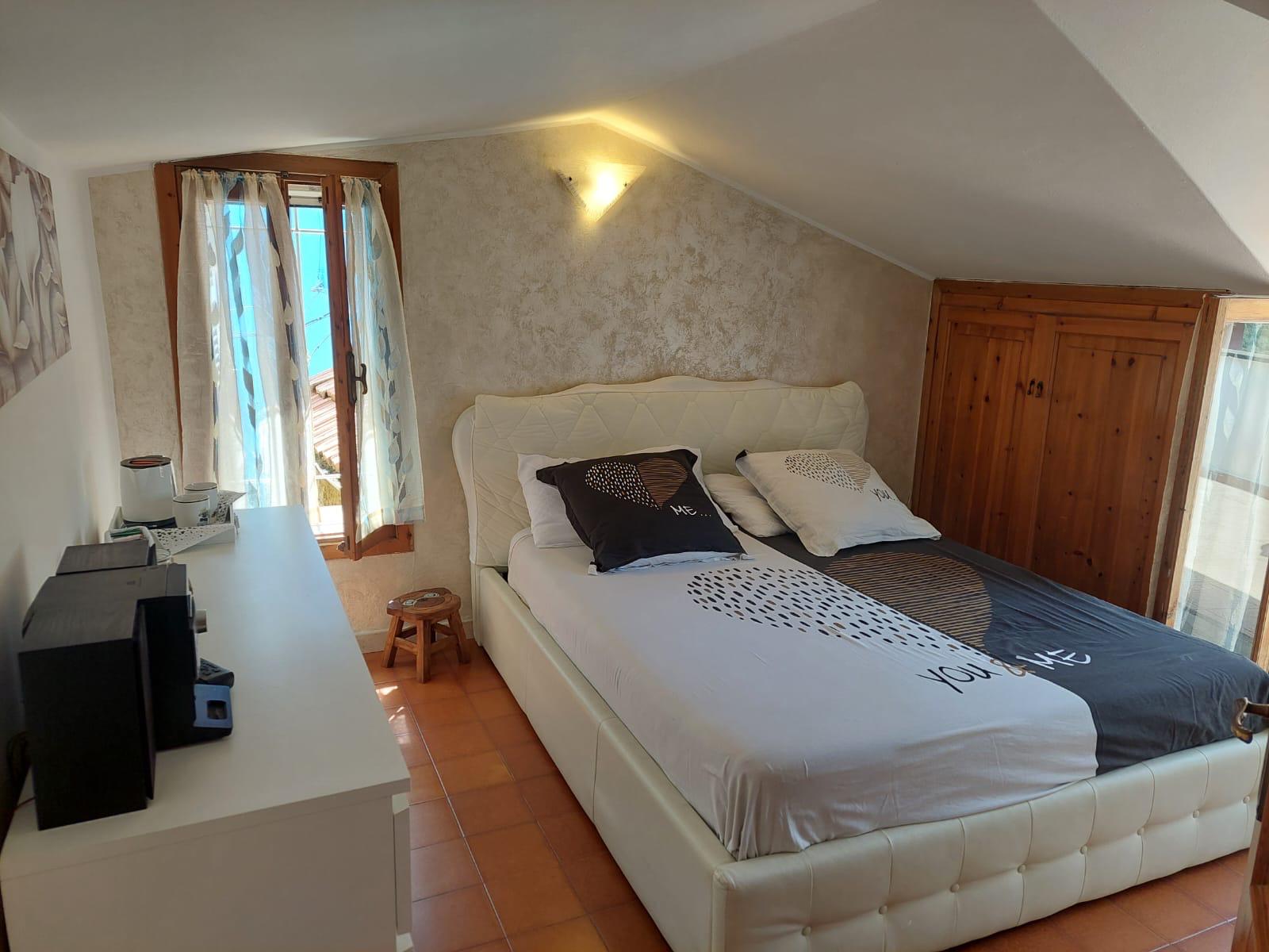 Al primo piano si trovano la camera da letto e una seconda stanza utilizzabile come camera per ospiti o bambini. Da entrambe le stanze si accede direttamente alla grande e soleggiata terrazza.